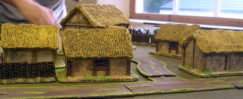 I deployed in the bottom left of the board, the Normans in the bottom right and Scrivs took the top right corner, leaving top left empty. A large village occupied the centre right of the board, with broken woodland on the left hand side.