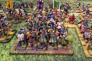 In preparation for Partizan next weekend James organised a test game hosted by Scrivs to test out the scenario. Based on the battle of Degsatstan where the Saxons of Northumbria gave the Picts a bloody nose.