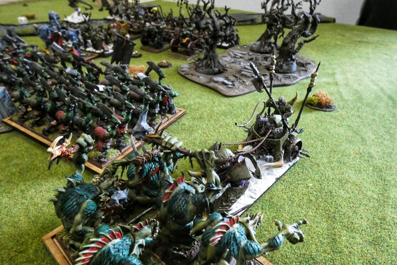 Spuggy Dave took chariot and Dragon Ogre to the face. Though not quite as many Dragon Ogres as expected as a big green foot had already squished one.