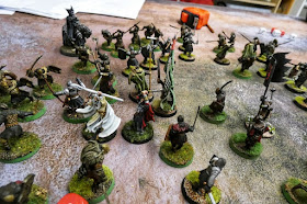 The miniatures required for this one finally got the better of us. We didn't have 50 Morannon Orcs, or even the 25 Rohan Warriors on foot required. And neither of us fancied buying them. So General B. painted up some characters, we used Mordor Orcs as stand ins and borrowed the men of Rohan. To be fair we've collected and painted everything else for the campaign.