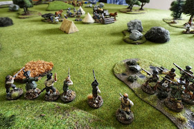 The scenario would be one from the book with the British following up their previous success to fall on the French and attempt to liberate their legumes. The French camp was defended by four units of light infantry - their Native allies were out foraging but would likely return as soon as the alarm was raised.